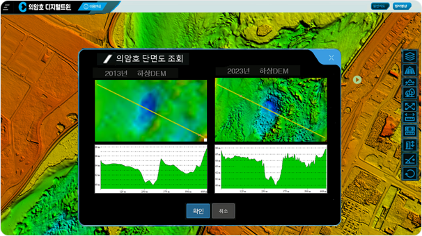Trend analysis of water depth changes by point and location using depth measurement and expected depth data overlap